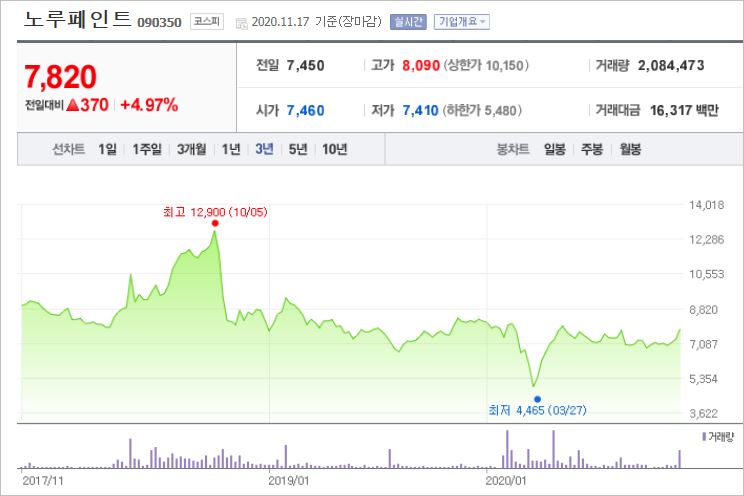 노루페인트는 페인트 사업을 영위하고 있는 기업으로 7개의 종속회사를 두고 있습니다. 주 매출은 바닥방수용, 공업용, 건축용, 중방식용 페인트이며, 고른 수익을 올리고 있습니다.