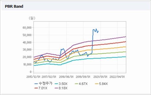 시가총액 4,873억원으로 코스닥 141위를 기록하고 있으며, 외국인소진율은 8.46% 입니다. 2020년 6월 기준, PER 162.64배, PBR 6.3배이며, 배당수익률은 없습니다.