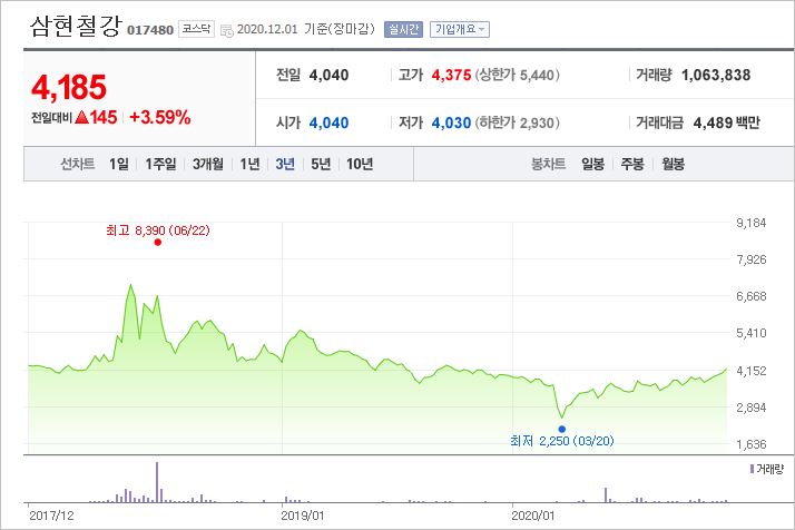 삼현철강은 포스코의 직속 열연판매점으로 현재 강관의 원료가 되는 열연제를 판매하고 있어 남북러 가스관 관련주로 꼽히고 있습니다.