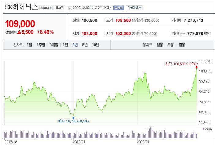 SK그룹의 계열사로 SSD 전용 낸드플래시를 생산 중에 있어 관련주로 꼽히고 있습니다. 최근 게임 콘솔과 스마트폰의 부품 수요가 늘어남에 따라 상향 추세를 보이고 있습니다.