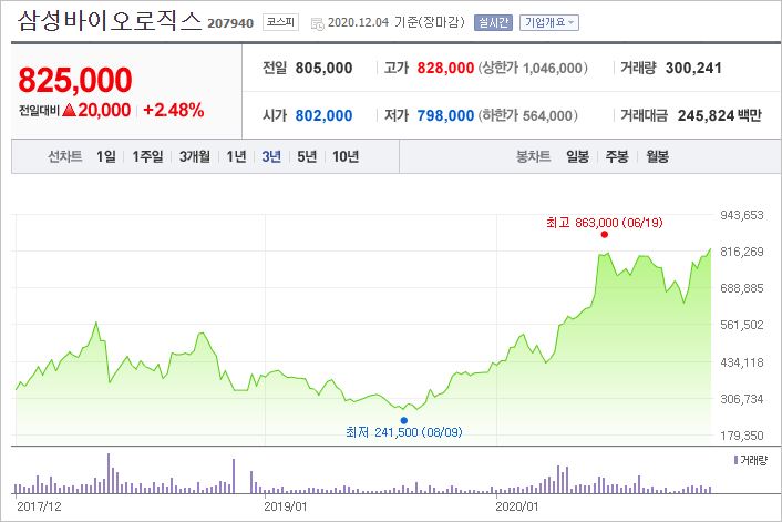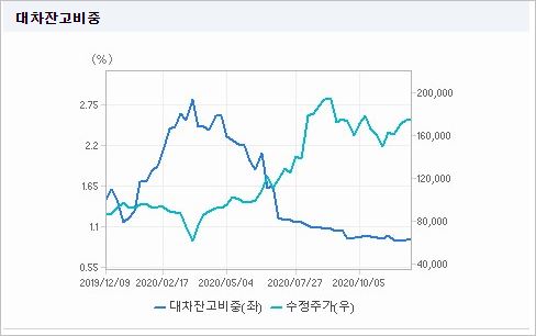 시가총액 54조5,861억원으로 코스피 4위를 기록하고 있으며, 외국인소진율은 9.98% 입니다. 2020년 9월 기준, PER 153.6배, PBR 12.13배이며, 배당수익률은 없습니다.