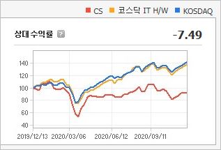 CS는 시가총액 465억원으로 코스닥 1235위를 기록하고 있으며, 외국인소진율은 1.13%입니다. 2020년 9월 기준, PER 2470배, PBR 2.11배이며, 배당수익률은 없습니다.