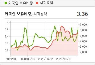시가총액 5,532억원으로 코스닥 114위를 기록하고 있으며, 외국인소진율은 3.38%입니다. 2020년 9월 기준, PER 182.76배, PBR 4.82배이며, 배당수익률은 없습니다.