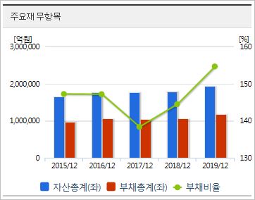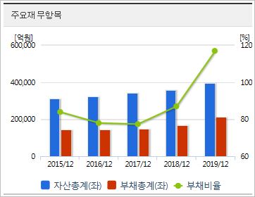 2020년 기준, ROE 3.83%, PER 17.36배(동종업종 22.23배), PBR 0.62배이며, 시가총액 36조2,168억원으로 코스피 8위를 유지하고 있습니다. 외국인소진율은 31.8% 입니다.