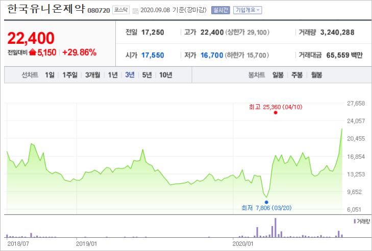 1. 한국유니온제약 (080720)