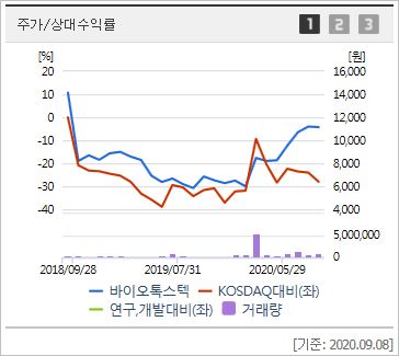 최근 치매신약의 긍정적인 임상 평가와 코로나 진단시약 생산 1위 업체인 솔젠트의 입지가 커지면서 주목받고 있습니다. 솔젠트는 바이톡스텍의 관계사 세종벤처파트너스가 투자하는 기업입니다.