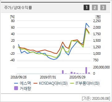 현재 삼성전자, 동우화인캠 등 대기업들을 납품처로 두고있어 매출이 안정적이며, 혈장치료제 이슈에 따라 급등하는 차트를 보여주기 때문에 안정성과 수익성 모두 매력적인 기업이라 할 수 있습니다.