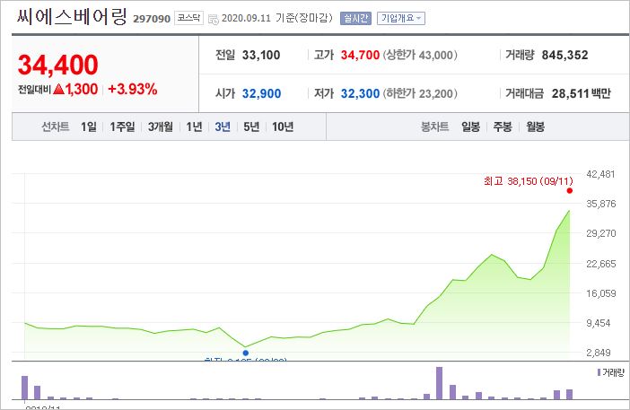 최근 신재생에너지협회에서 전 세계 해상풍력시장이 16% 이상씩 매년 발전할 것이라고 전망함에 따라 큰 폭으로 오른 기업입니다. 2020년 6월 대비 3개월만에 3배 가까운 주가 상승의 저력을 보였습니다.