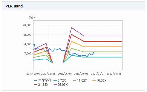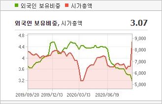 시가총액은 4,886억원으로 코스닥 146위이며, 외국인소진율은 2.76% 입니다. 2020년 기준, ROE 15.71%, PER 7.48배, PBR 0.45배이며, 시가배당률(2019년 기준) 0.78% 입니다.