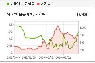 시가총액은 826억원으로 코스닥 856위에 위치하고 있으며, 외국인소진율은 0.98% 입니다. 2019년 기준, ROE -1.01%, PER -106.48배, PBR 1.07배이며, 배당은 없었습니다.