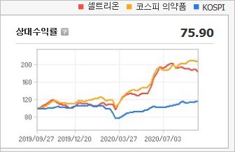 셀트리온제약은 이번 코로나19를 통해 가장 큰 성장을 한 기업입니다. 각종 단백질 치료제를 개발, 연구, 생산하는 기업으로 아시아 최대규모의 동물세표배양 설비를 보유하고 있는 곳이기도 합니다.