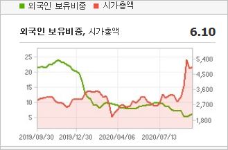 시가총액 6조1,148억원으로 코스피 38위이며, 외국인소진율은 19.79% 입니다. 2020년 6월 기준, PER 14.21배, PBR 1.03배, BPS 37,273원이며, 배당수익률(2019.12)은 0.52% 입니다.