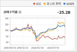 KCC는 공업용, 건축용, 자동차용, 선박용 등 다양한 분야의 도료 생산을 하는 기업입니다. 더불어 실리콘, 홈씨씨 등의 유통사업도 하고 있어 매출의 폭이 넓은 편입니다.