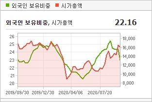 시가총액 1조6,740억원으로 코스피 129위이며, 외국인소진율은 22.16% 입니다. 2020년 6월 기준, EPS -882원, PBR 1.19배, BPS 30,019원이며, 배당수익률(2019.12)은 1.54% 입니다.
