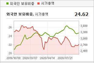 시가총액 2,757억원으로 코스닥 276위를 기록하고 있으며, 외국인소진율은 24.63% 입니다. 2020년 6월 기준, PER 12.72배, EPS 1,860원, PBR 2.28배이며, 배당수익률(2019.12)은 2.45% 입니다.