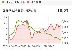 시가총액 783억원으로 코스닥 903위를 기록하고 있으며, 외국인소진율은 3.8% 입니다. 2020년 6월 기준, PBR 0.85배, BPS 7,812원, 배당수익률(2019.12)은 0.75% 입니다.