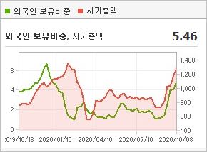 시가총액 1,380억원으로 코스닥 570위를 기록하고 있으며, 외국인소진율은 5.29% 입니다. 2020년 6월 기준, PER 96.26배, EPS 91원, PBR 5.5배이며, 배당수익률(2019.12)은 0.57% 입니다.