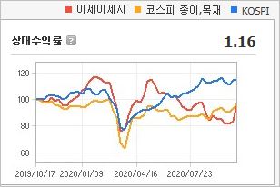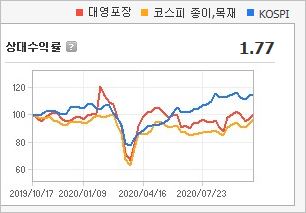 시가총액 1,241억원으로 코스피 648위를 기록하고 있으며, 외국인소진율은 2.27% 입니다. 2020년 6월 기준 PER 18.17배, PBR 0.77배이며, 배당수익률은 없습니다. 골판지 관련주