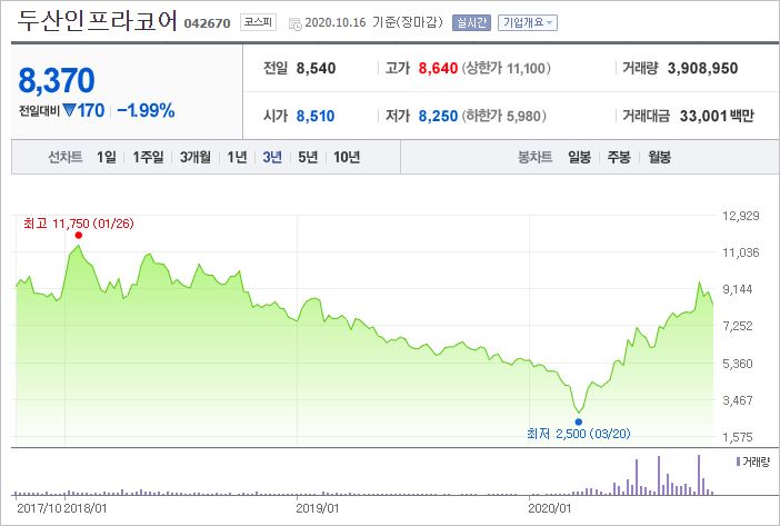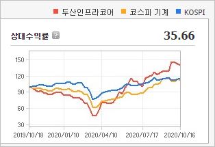 두산인프라코어는 엔진, 건설중장비 등을 판매하는 사업을 영위하고 있습니다. 친환경 소형엔진을 공급함에 따라 지게차, 농기계에도 매출을 확대시키고 있습니다.