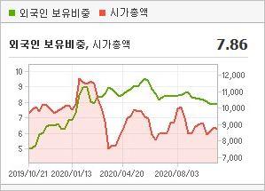 시가총액 8,443억원으로 코스닥 55위를 기록하고 있으며, 외국인소진율은 7.86% 입니다. 2020년 6월 기준, PER 27.15배, PBR 3.22배이며, 배당수익률(2019.12)은 1.1% 입니다.