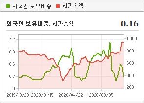 시가총액 986억원으로 코스닥 747위를 기록하고 있으며, 외국인소진율은 0.16% 입니다. 2020년 6월 기준, PBR 1.79배, BPS 11,566원이며, 배당수익률(2019.12)은 0.97% 입니다.