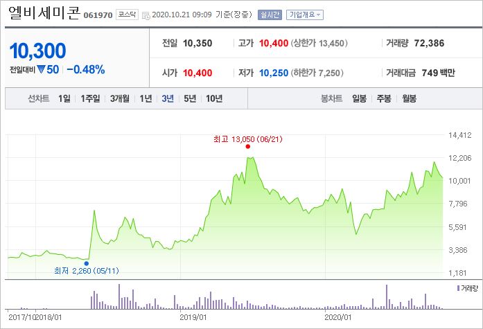 엘비세미콘은 드라이브IC, CMO 등 비메모리 반도체 섹터에서 인정받고 있어서 대장주의 역할을 하고 있습니다. 비메모리 관련 이슈가 있을 때마다 급등 추세를 보이고 있습니다.