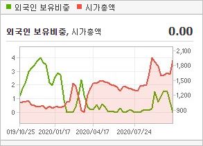 시가총액 1,832억원으로 코스피 516위를 기록하고 있으며, 외국인소진율은 없습니다. 2020년 6월 기준, PER 58.62배, PBR 2.79배이며 배당수익률은 없습니다.