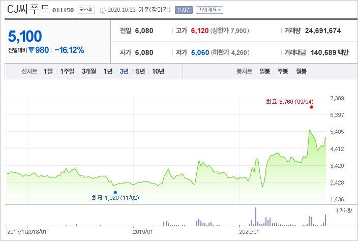 수산 관련 식품이 주를 이루기 때문에 구제역 발생시 대체식품으로 떠오르는 기업입니다. 실제로 구제역이 심해지면 가장 크게 수혜를 보고 있습니다.