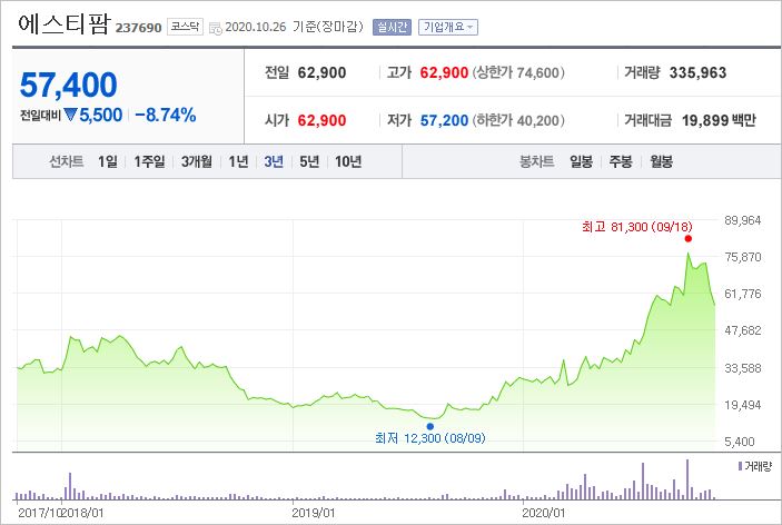 렘데시비르의 원료라 할 수 있는 뉴클레오시드를 생산하고 있어 직접적인 대장주의 역할을 하고 있으며, 실제로 렘데시비르 이슈에 따라 큰 폭으로 상승을 하고 있습니다.