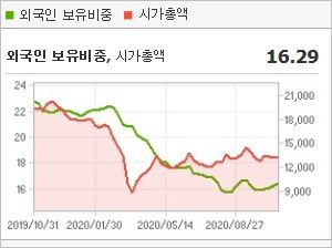 시가총액 1조2,961억원으로 코스피 154위를 기록하고 있으며, 외국인소진율은 16.29% 입니다. 2020년 6월 기준, PER 12.1배, PBR 0.52배이며, 배당수익률은 없습니다.