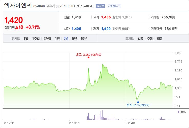 3. 엑사이엔씨(054940)