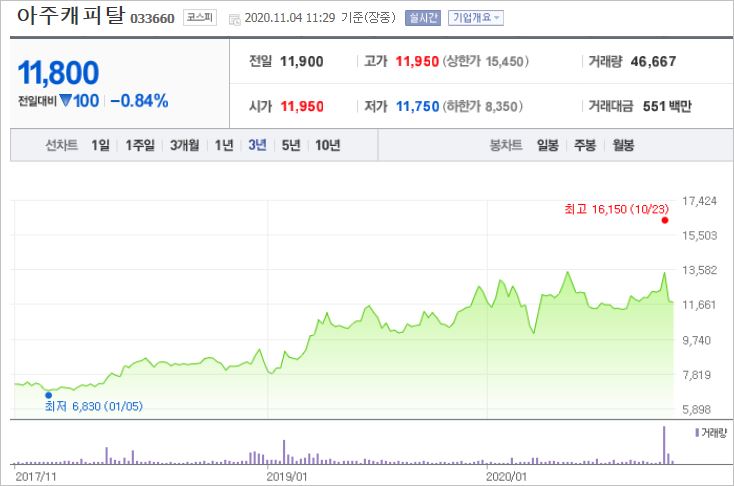 코로나로 금년의 상황이 안좋았음에도 불구하고 안정적인 실적을 내고 있으며, 특히 중고차 금융 분야에서 큰 성장세를 보이고 있습니다. 작년/제작년 배당률은 5%를 상회하였으며, 배당금(작년)은 650원입니다.