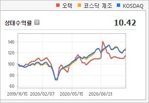 오텍은 특수차량을 제조하는 전문기업입니다. 특수물류차량, 전문진료차량, 음압엠뷸런스, 의료기기 등의 사업을 영위하고 있으며, 최근 코로나19 관련하여 음압 엠뷸런스 생산으로 급등하는 추세를 보였습니다.