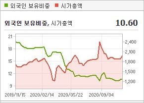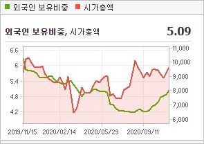 시가총액 9,760억원으로 코스피 187위를 기록하고 있으며, 외국인소진율은 5.08%입니다. 2020년 6월 기준, PER 12.74배, PBR 2.06배이며, 배당수익률(2019.12)은 1.29% 입니다.